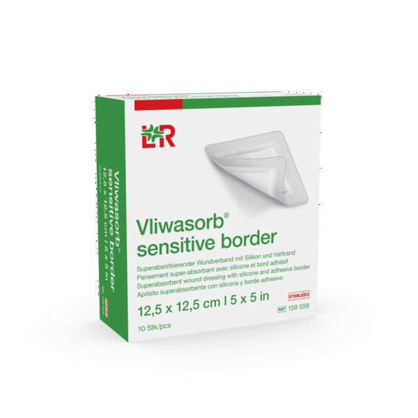 Vliwasorb sensitive border mit Silikon steril, 12,5 × 12,5 cm, 10 Stück